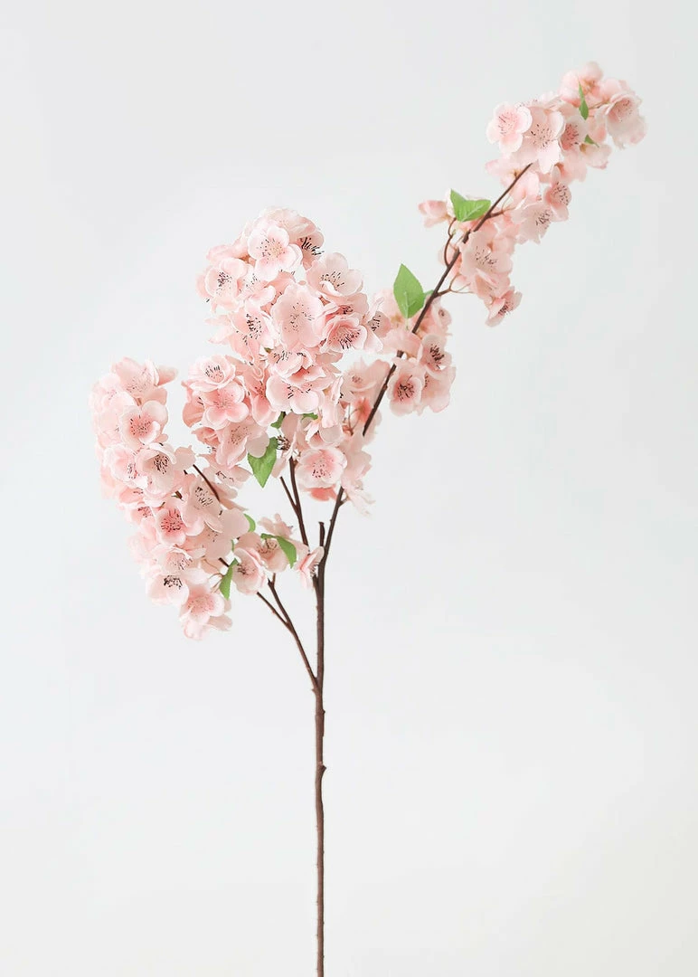 Beautiful pink faux cherry blossom flower branches will bring a smile to your face while keeping the feeling of spring fresh in your home throughout the year! Add these blooms to floral arrangements, or simply style a bundle of several stems in your favorite vase.