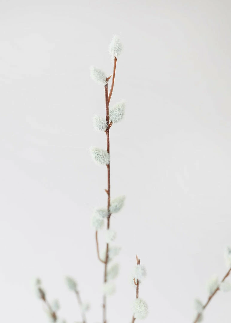 Modern, minimalist, and perfect for any space, these grey artificial pussy willow branches are just what your home decor needs. Style them in a tall branch vase for a simple clean look. These artificial pussy willows feature realistic, fuzzy buds and the fully-wired stem allows for easy shaping to create the look of natural pussy willow banches from every angle.