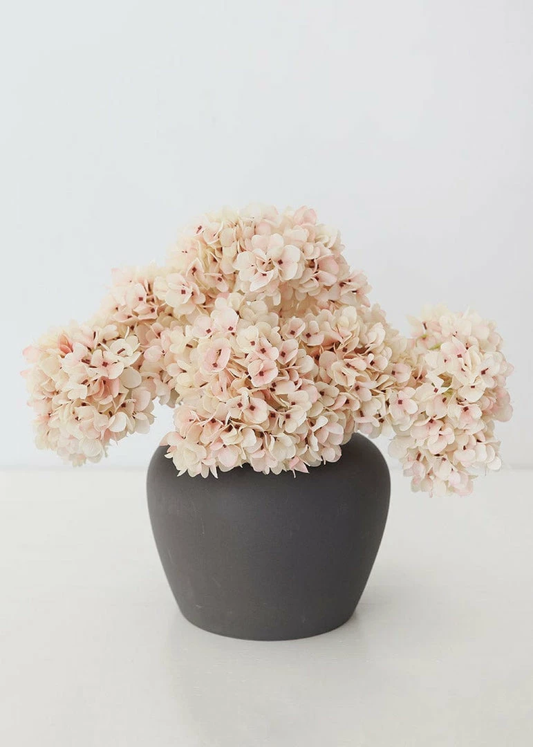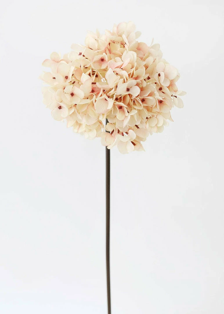 We’ve never met a hydrangea flower that we didn’t love, including this oversized blush silk hydrangea flower. These fluffy blooms feature mainly a peach cream petal with dusty rose and blush accents. To add a pop of deep contrast, the center offers berry-colored plastic detailing.