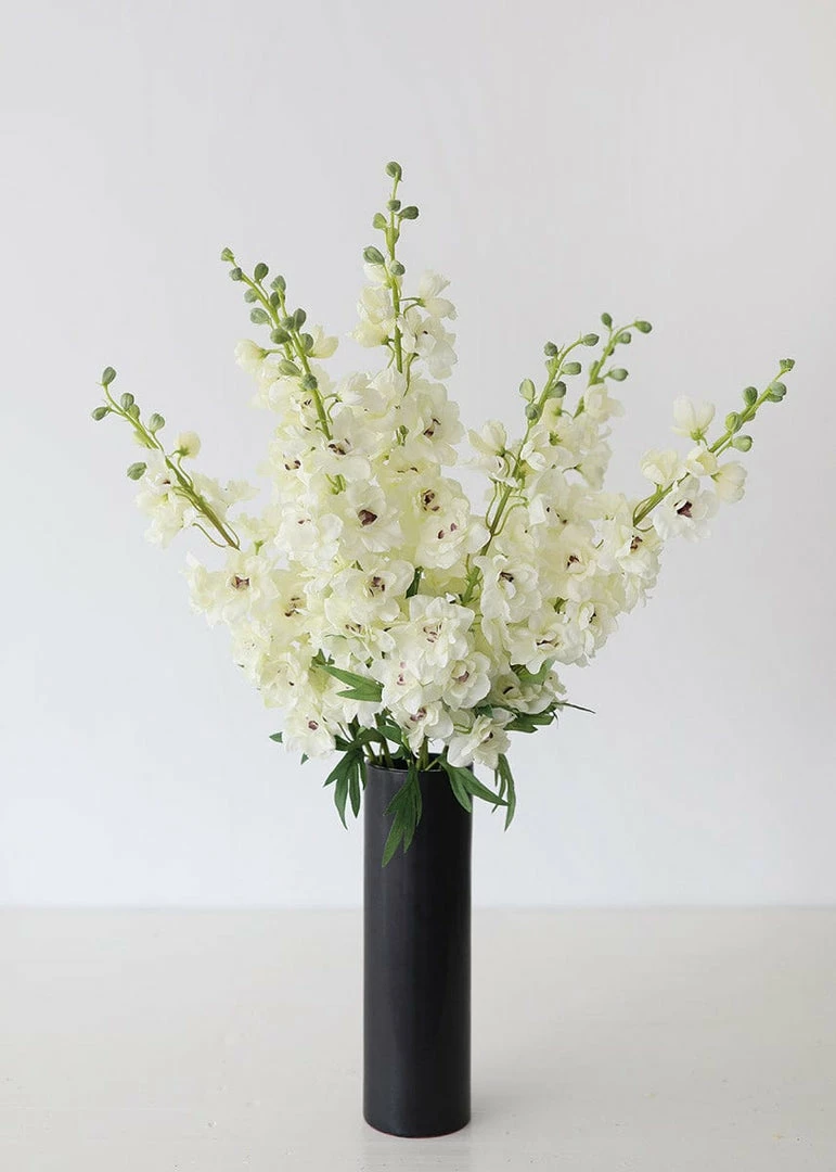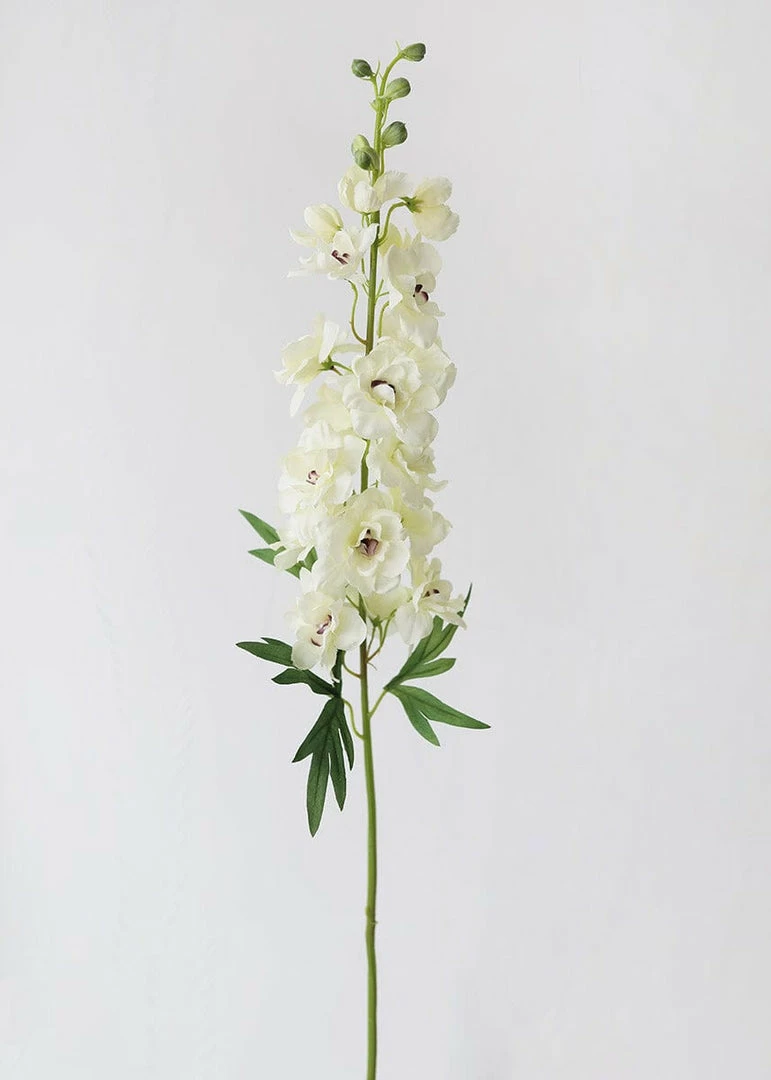 Find cream artificial flowers, like this gorgeous cream faux delphinium larkspur spray. This delphinium wildflower looks stunning in a tall vase arrangement, or add intricate detail to your classic wedding bouquet!