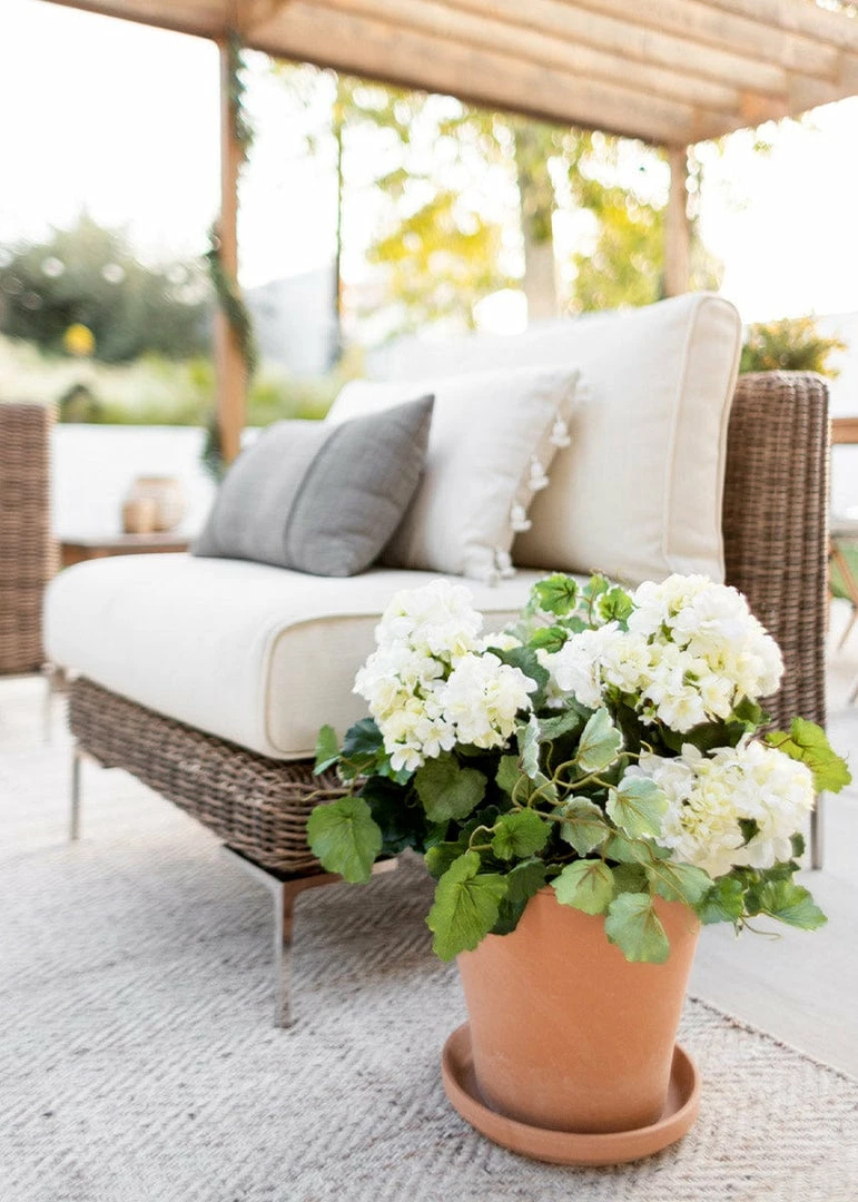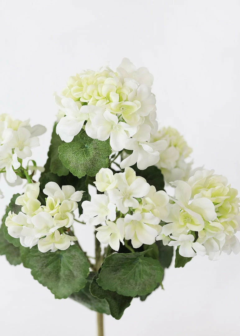 No matter if you are enjoying these white silk geranium flowers indoors or outdoors, they will bring the feeling of nature to your decor. Style this artificial geranium bush in a patio hanging basket or a porch planter to create an effortlessly beautiful design your guests will be stunned to discover is faux!