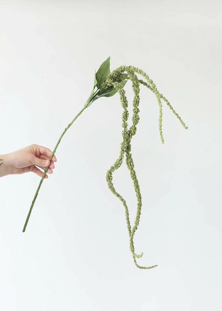 Gorgeous amaranthus spray in vivid green. Also known as a summer poinsettia, this green amaranthus adds texture to hanging centerpieces and cascading wedding bouquets.