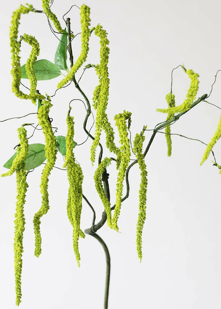 This artificial branch has beautiful green hanging amaranthus flowers. Style alone in a vase for an eye-catching centerpiece, or you can incorporate the cascading faux blooms into an arrangement for dimension and texture.