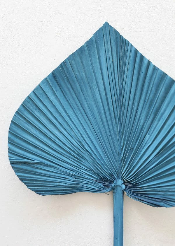 Find colorful natural sun palms, like this gorgeous, vibrant blue cut pointed dried palm spear. For a simple but trendy look, style a few of these palm spears in your favorite vase to brighten any space. Each spear is natural and unique, sizes and color may vary.