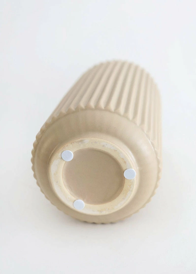 Beautifully simple, yet right on trend our custom ceramic wide ridged vase is the perfect start to any flower arrangement. Its matte finish ridged texture draw the eye up towards your design. Display this unique vase with a dried flower arrangement or one standout artificial stem. This vase is an Afloral exclusive.