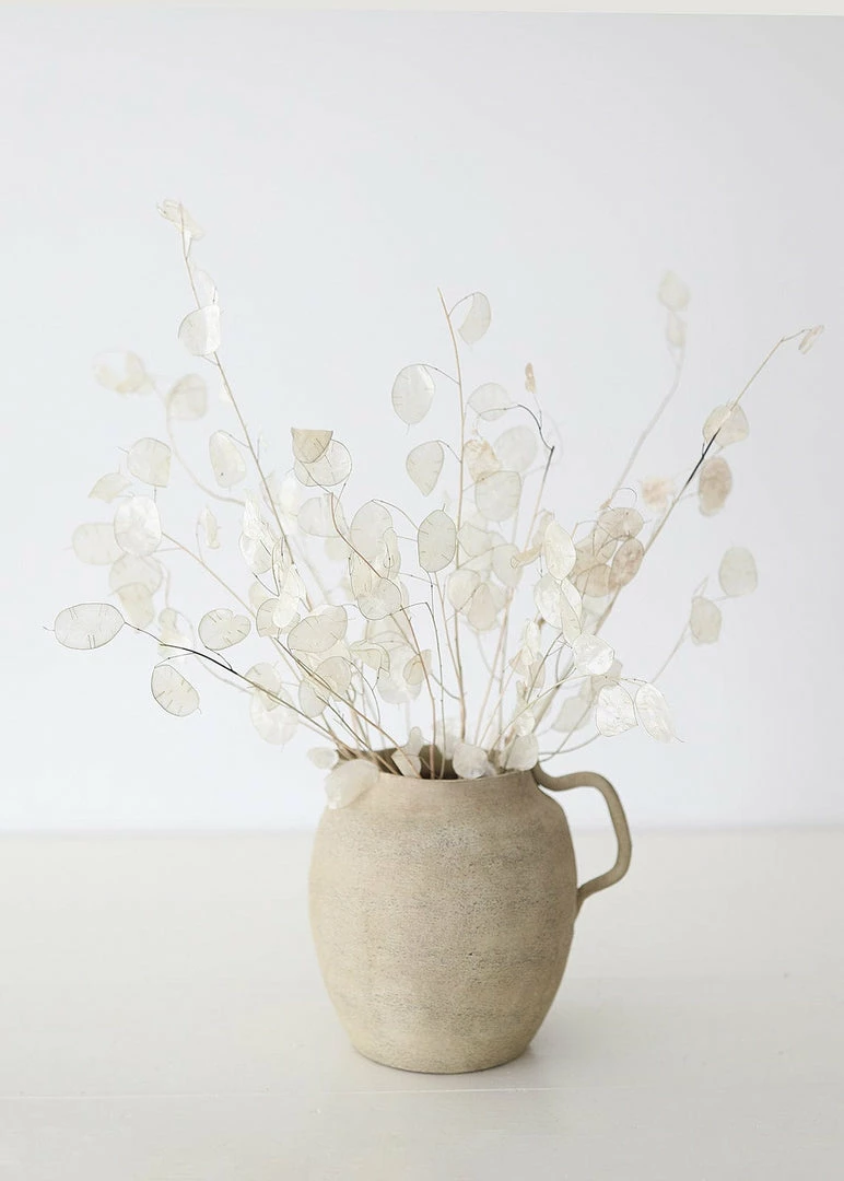 Achieve clean, sophisticated home vase decor or wedding centerpieces with these natural dried lunaria silver dollar branches. They give your design perfect coastal vibes and nature’s touch of whimsy. Natural product, each bundle is unique and color can vary from cream to yellow or a mixture of both.