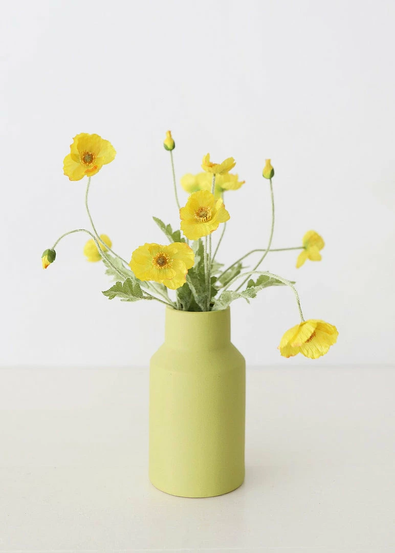 Find colorful flower vases, like this simply stunning pistachio green vase with texture. You can fill it with fake or dried flowers in pastels for an everyday, bright look, or use as a modern decor piece for an eye-catching design.