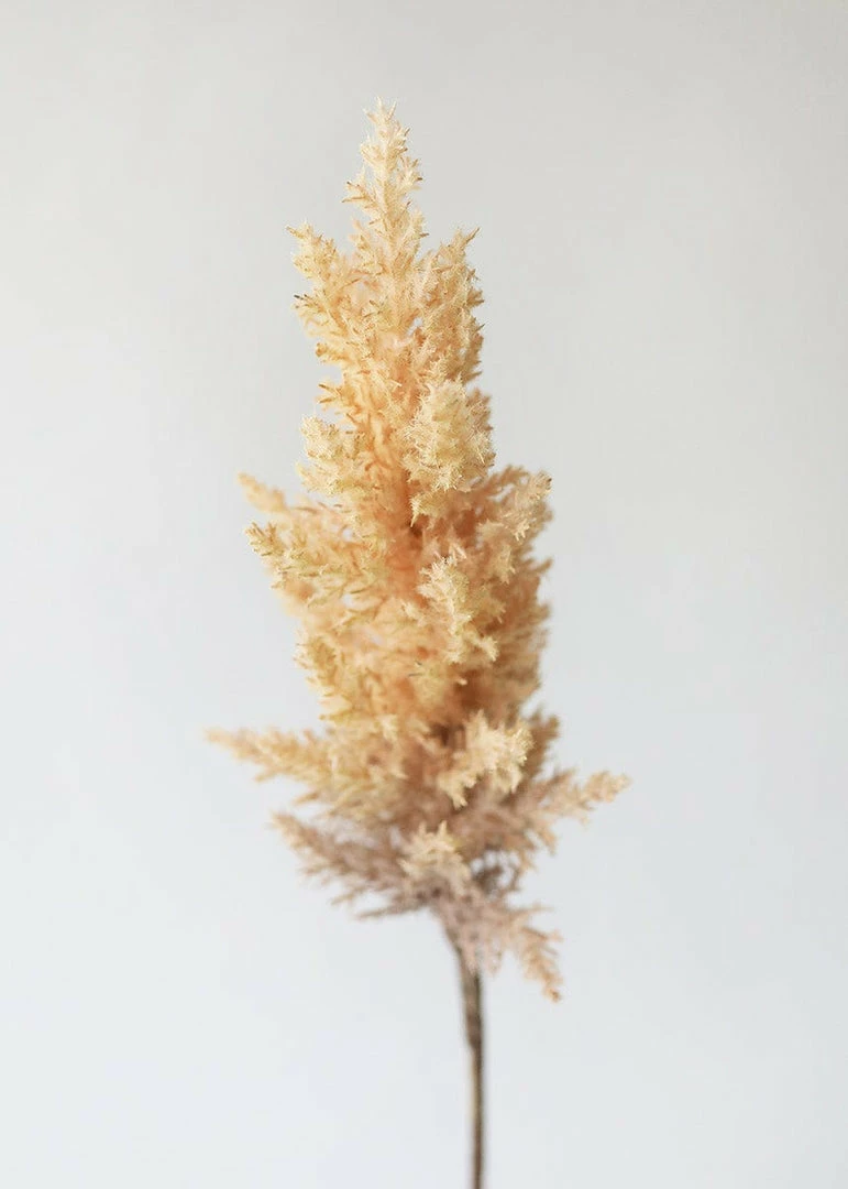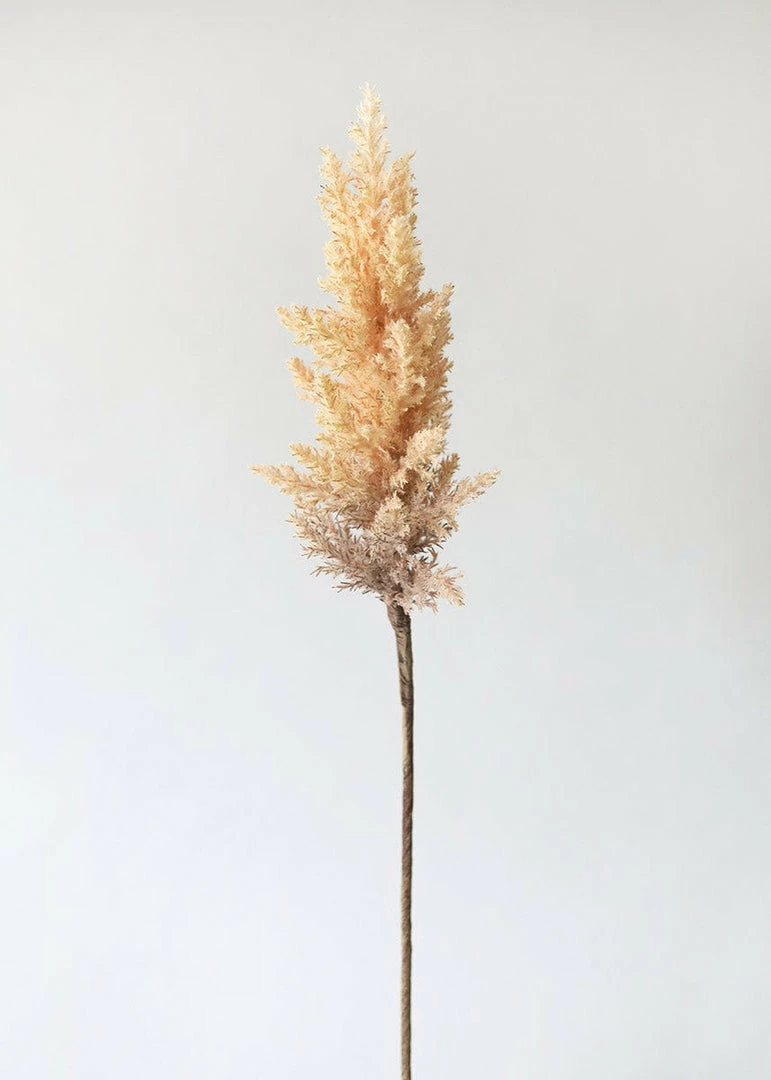 Take a simple approach to fall home decorating with tall, artificial grasses inspired by nature. This perfectly neutral tan fake pampas grass stem is beautiful alone in a vase or styled in an autumn flower arrangement.