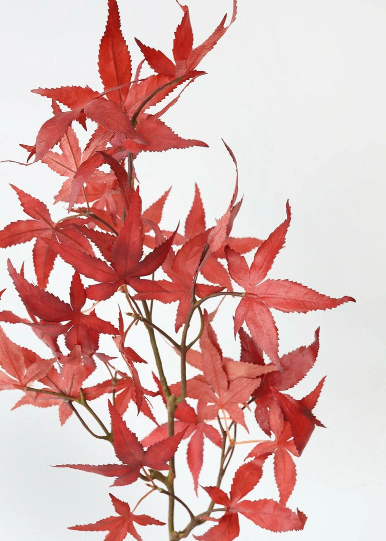 Find artificial fall leaves, like this gorgeous dark red burgundy fake Japanese maple leaf branch. This faux fall foliage has a rich, warm autumn hue that’s sure to enhance your floral arrangements and door wreaths this season.