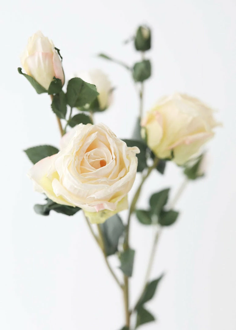 Whether you are styling everyday home vase decor or Christmas floral arrangements and holiday wreaths, these artificial rose flowers in cream with light pink highlights bring sophisticated elegance. Choose fake roses for lasting beauty.