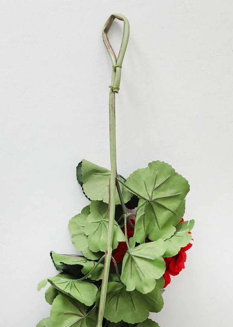 Nothing gets better than no-maintenance outdoor flowers, so freshen up your outdoor seating area with a vibrant red UV-protected geranium garland. The fluffy red geranium clusters are UV protected and pop against the lifelike textured geranium leaves. Hung on a two-toned durable plastic-coated wire stem, this artificial geranium garland is perfect for hanging season after season.
