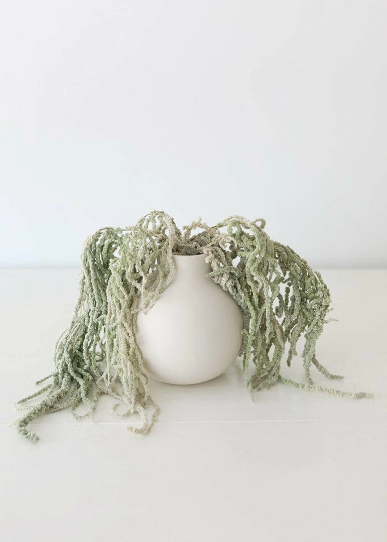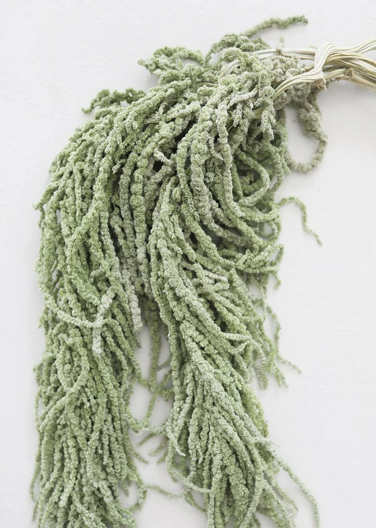 The perfect muted shade of green, these preserved amaranthus flowers are a beautiful way to welcome the feeling of nature to your designs. The trailing blooms give hanging floral installations and vase arrangements that striking, cascading look. These flowers are naturally dried and may shed. Gently shake to remove any loose pieces.