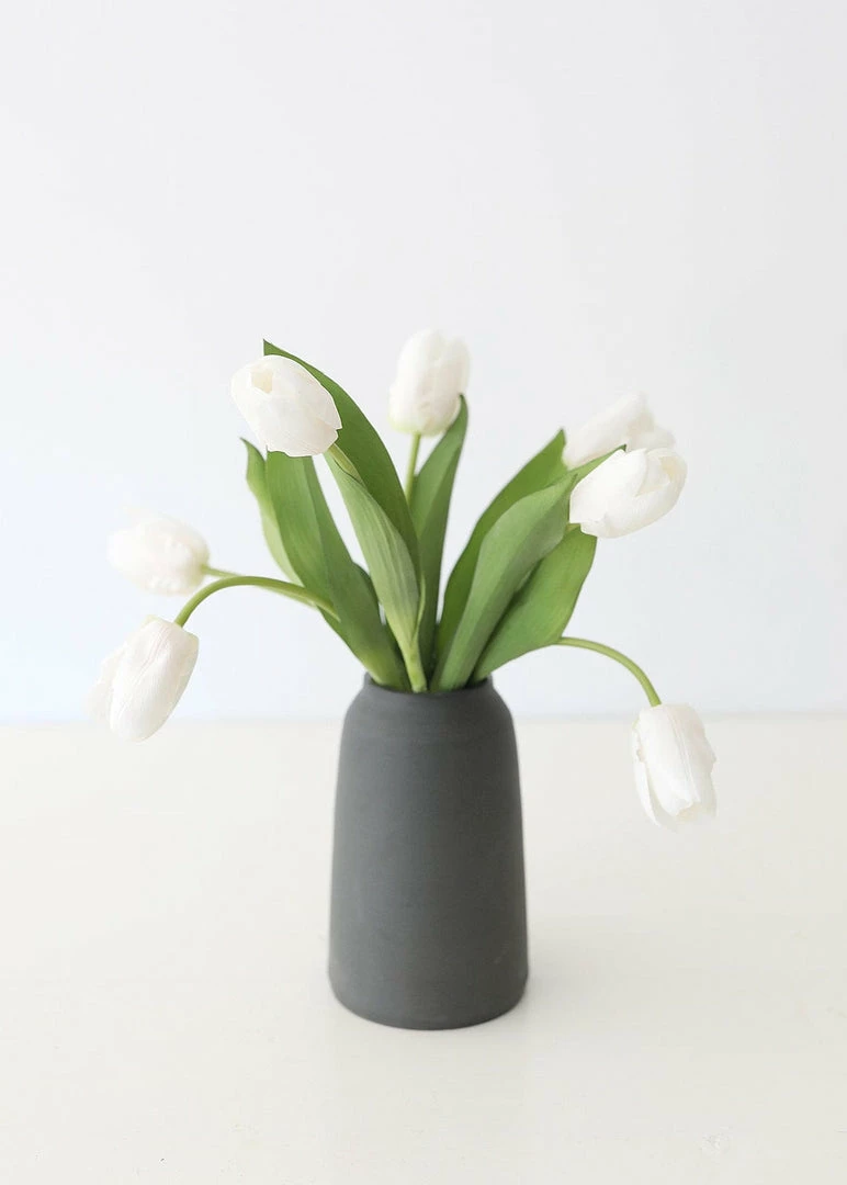 Are you looking for black vases? This handmade rough stoneware vase in soft black-wash is an elegant choice. Simply fill it with your vase ready floral bundles or flower bouquets. Each vase is unique due to the handmade process.