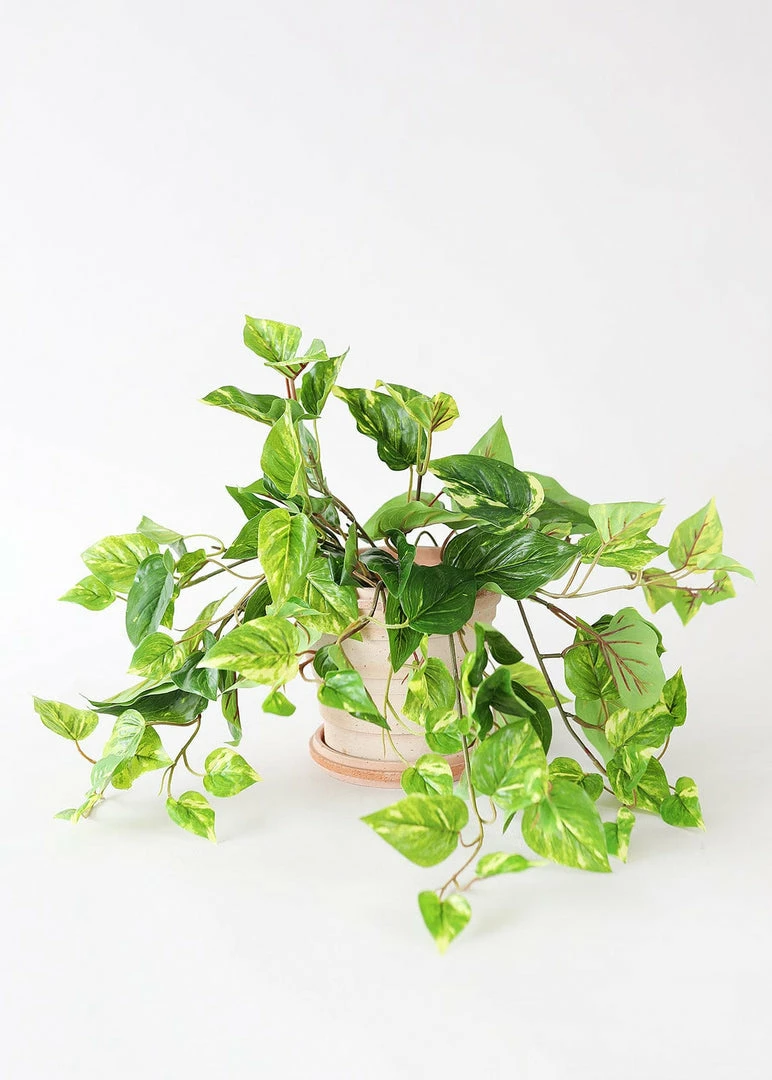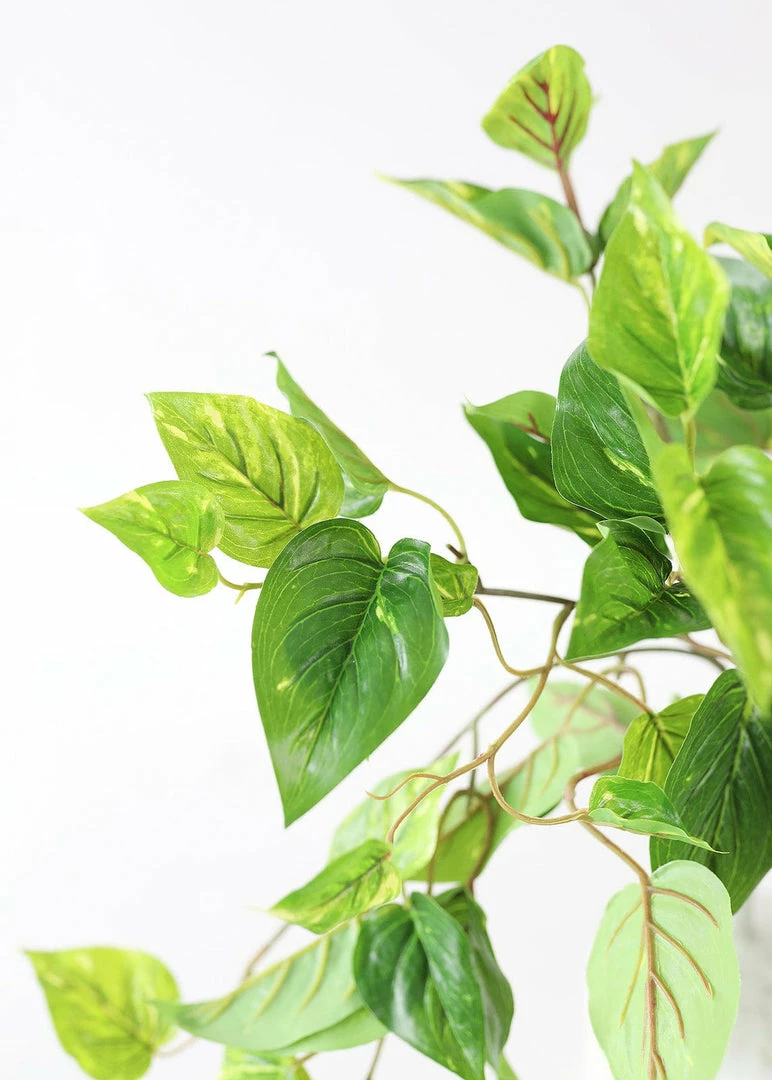 Decorate your home and outdoor space with this artificial Pothos plant in green with white accents. No hassle or fuss with this UV protected Pothos.
