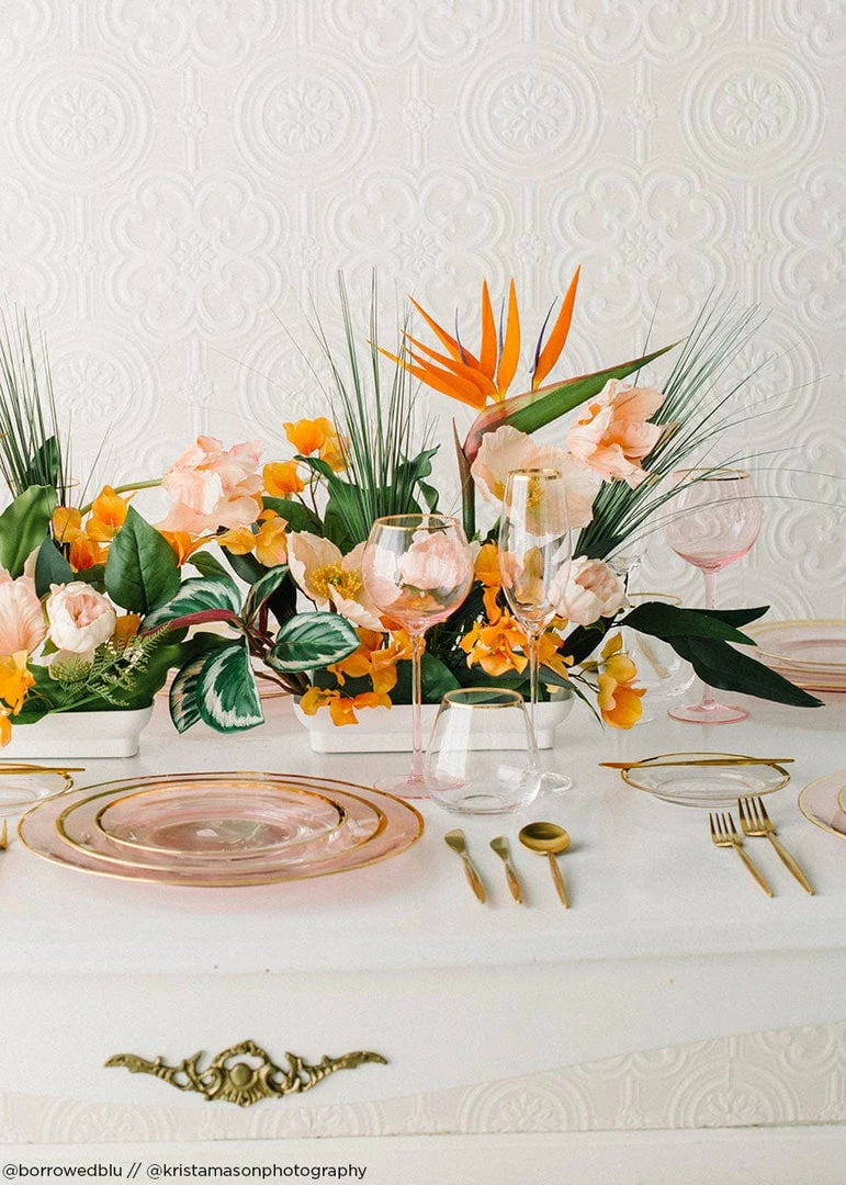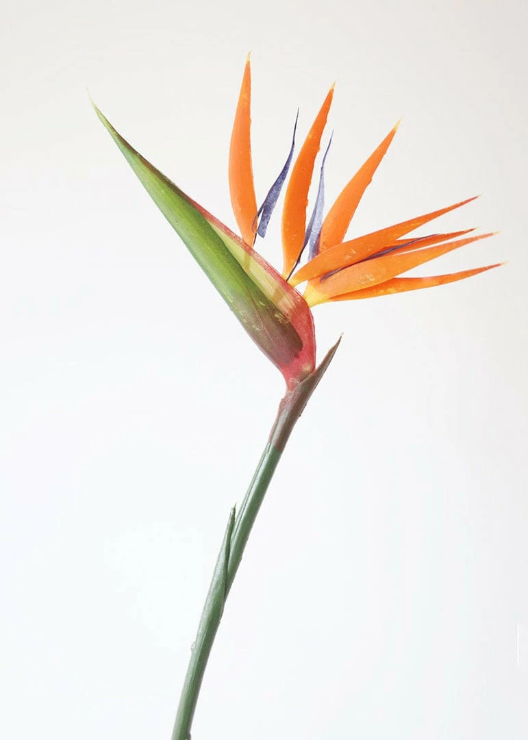Give your wedding the feel of the tropics with this Orange Bird of Paradise! The perfect flower for any Tropical Arrangement. The head and fronds are hard plastic.