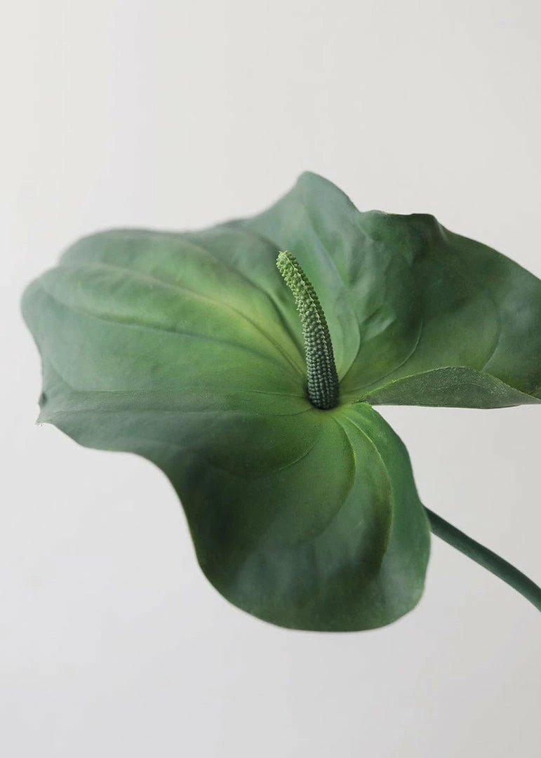 Find artificial tropical leaves for trendy home decorating, like this striking green large anthurium stem. It’s so simple to style this fake leaf in your tall vase for a modern look that lasts.