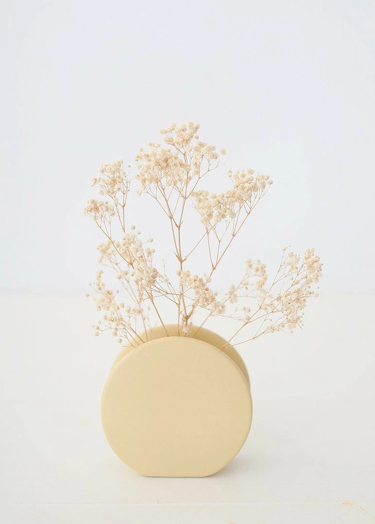 Find vases for your modern decor like this adorable matte pastel yellow ceramic circle vase. Style simply with a few dried or faux floral stems.