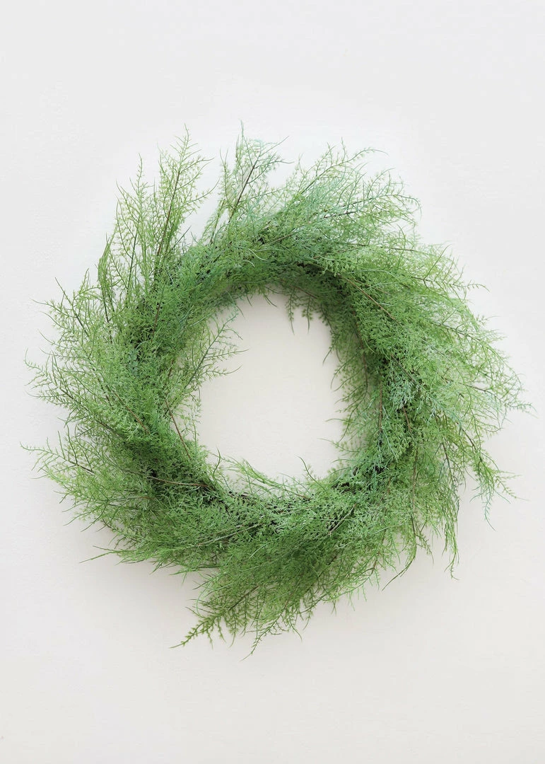 Looking for fake outdoor wreaths to spruce up your porch decor? This fabulous, lush green real touch plastic asparagus fern wreath is a must-have for indoor or outdoor spaces.