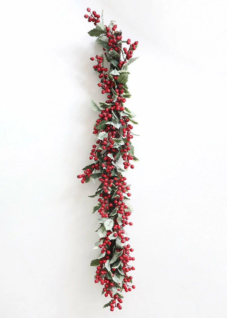 Take the simple approach to your winter home decor with fake holiday greens and Christmas greenery garlands that last. This variegated green white artificial holly leaves garland with red waterproof berries on a grapevine base is a festive choice.