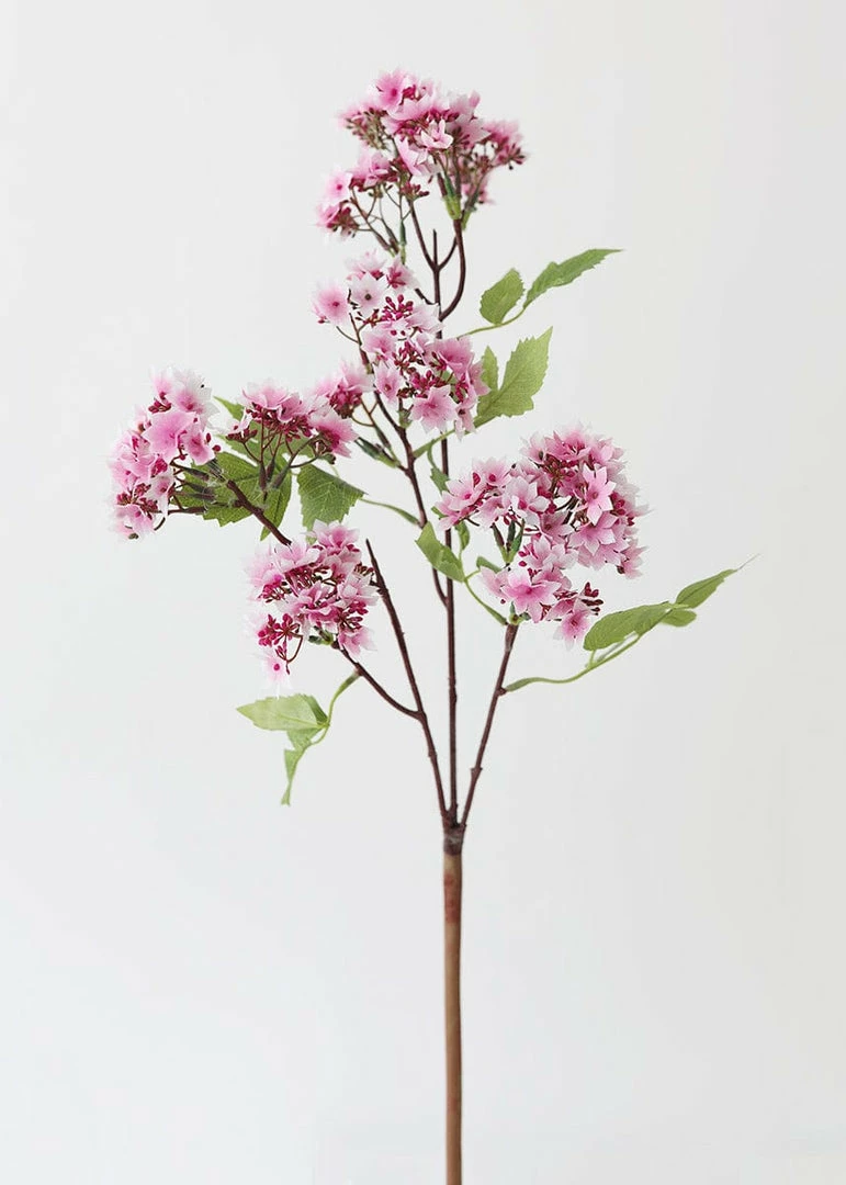 These star-shaped filler flowers are a firecracker of color for your wedding bouquets or special occasion arrangements. This pink artificial bouvardia flower branch shows off its ombre-like petals showcasing the deep lavender-pink of the center into a gradient of cream white around the edges. Add some romance to your wedding bouquet or floral centerpieces and pair with off-white roses or smoky lavender accents.