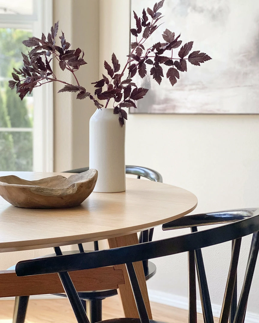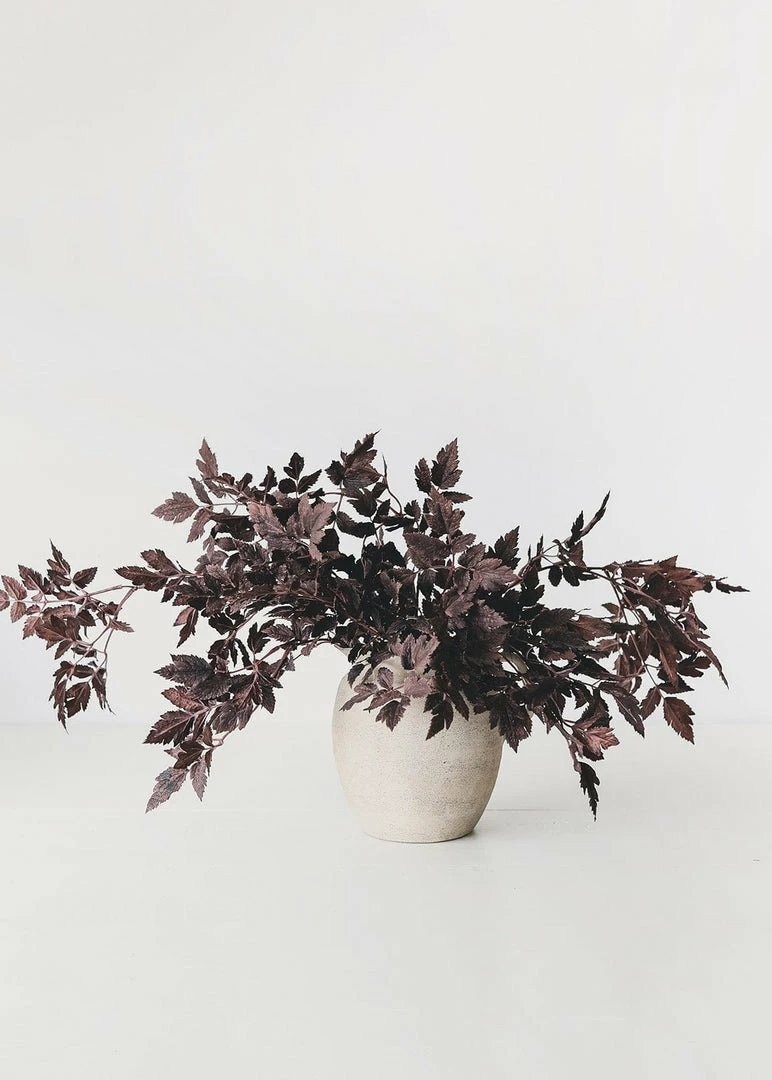 Bring the feeling of a crisp fall day into your home with these artificial Cimicifuga Ramosa leaves. The rich, deep plum purple hue makes this Hillside Black Beauty foliage a striking addition to your autumn wreaths and faux flower arrangements.