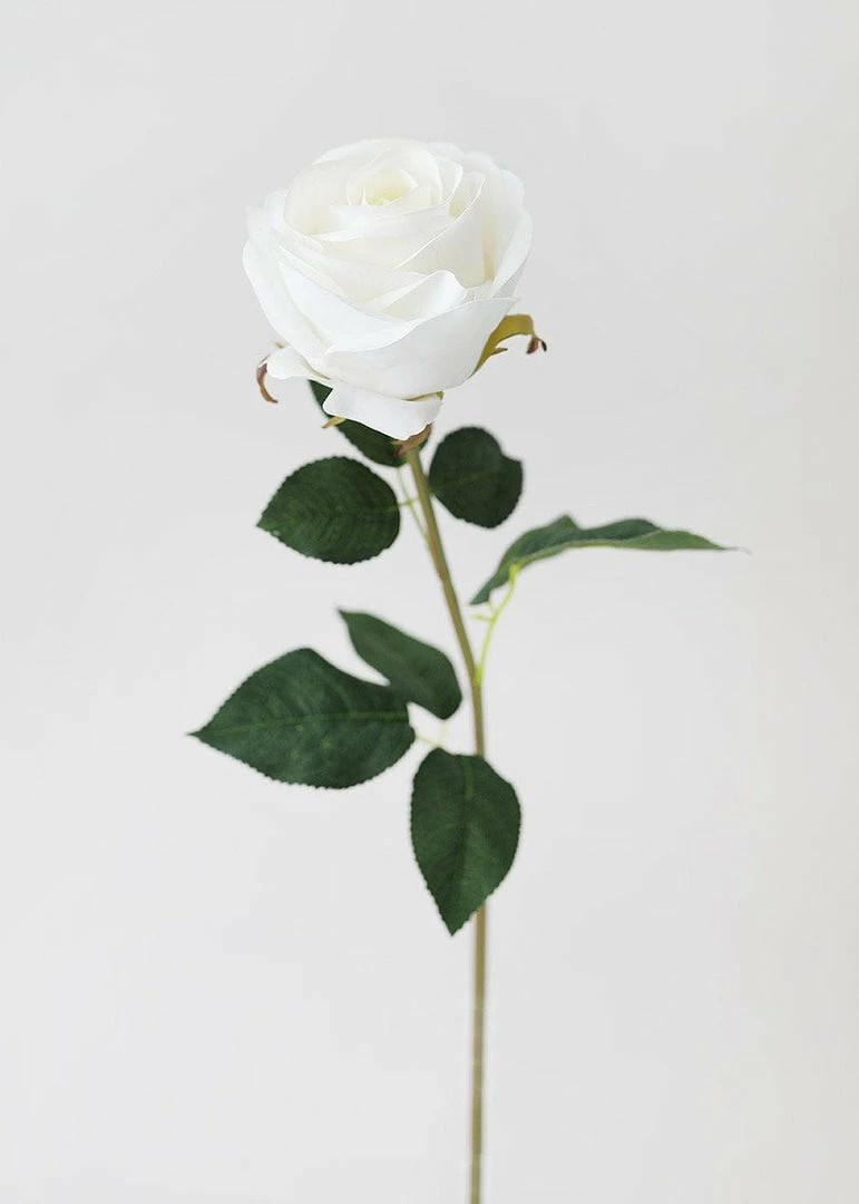 Create a stunning wedding bridal bouquet or a simple fake flower arrangement with this white real touch rose stem. Bundle together for an effortless rose bouquet, add to a centerpiece, or simply style alone in a tall bud vase for an elegant look that lasts!