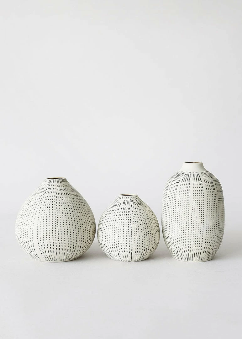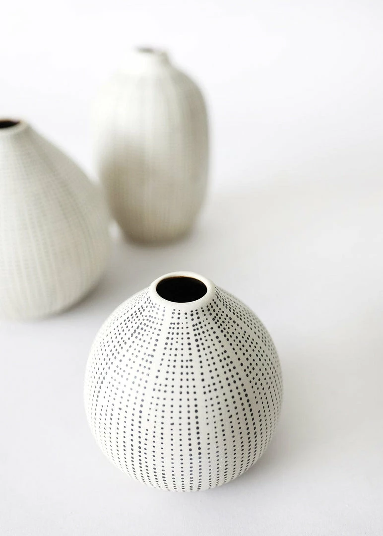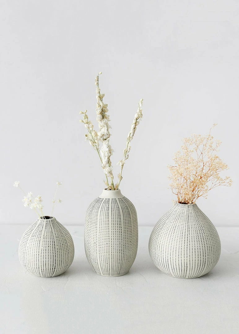 Textured stoneware bud vases in black and white are beautiful vessels for your favorite dried flower stems.