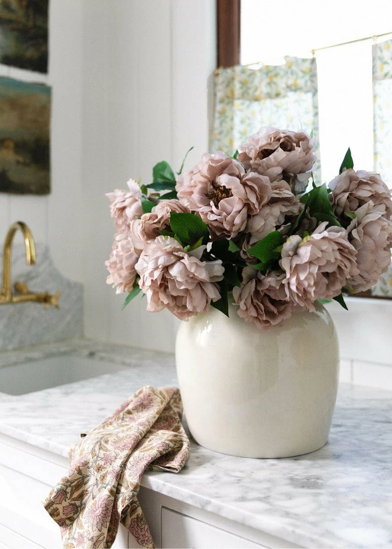 Big, beautiful blooms are always in season – This artificial silk peony in taupe mauve will be the showcase of any faux floral arrangement adding a stunning contemporary shade of purple. Warm up any cool-toned room with this unique modern accent and enjoy the look of fresh-cut peonies…forever! This oversized bloom features fluffy petals with lifelike detailing around the edges and a fully-wired stem for easy arranging.