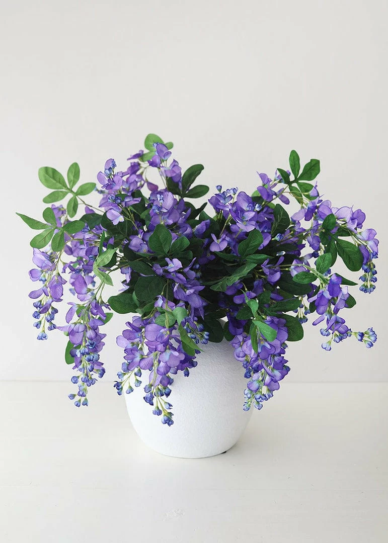 Transform your wedding venue into a garden filled with draping vines of violet and deep green. This artificial violet blue silk hanging wisteria bush is an elegant way to create cascades of flowers and lush greenery for any special occasion. The delicate silk petals offer multi-dimensional coloring that mimics the indigo, lavender, and deep hues of a true wisteria plant.