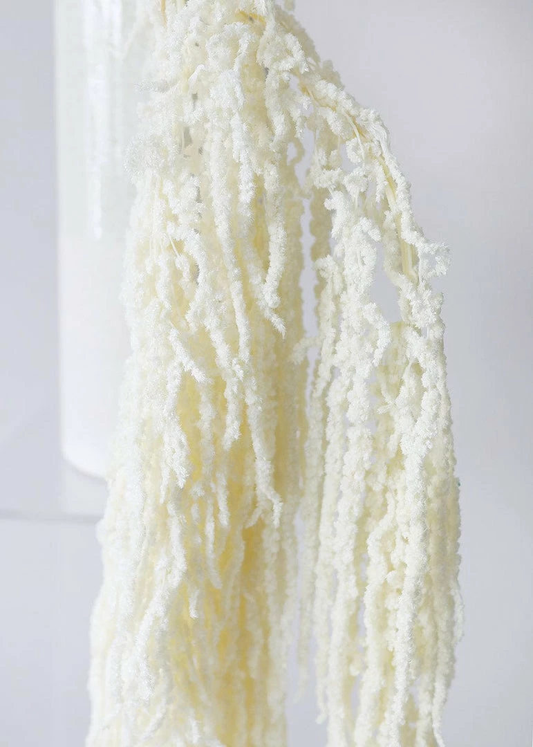 Absolutely gorgeous bleached white hanging amaranthus is preserved to last so you can enjoy nature’s natural botanicals in your home. Add these trailing flowers to hanging floral installations or cascading dried arrangements for elevated style. Naturally beautiful flowers, each bundle is unique.