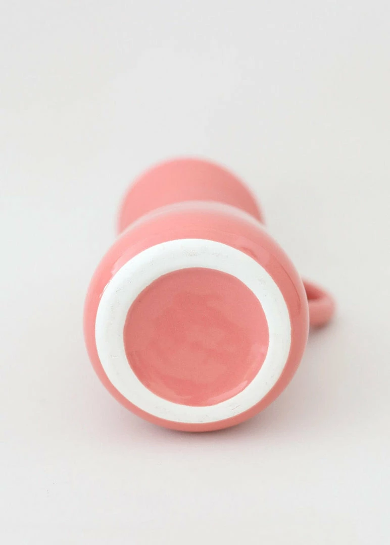Find trendy ceramic flower vases for everyday home decorating, like this striking coral pink glossy pitcher vase with a handle. Simply fill it with your favorite white artificial flowers to create a look that pops.